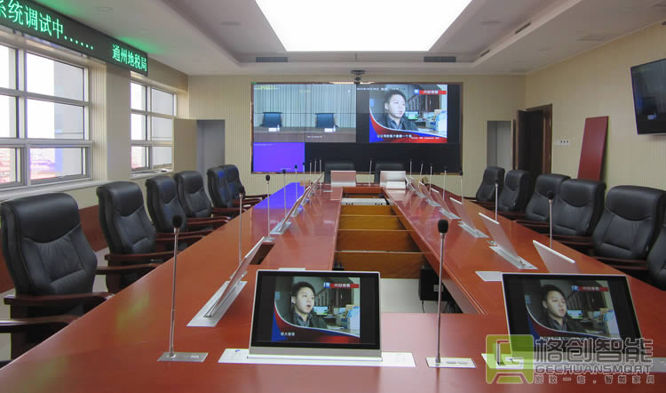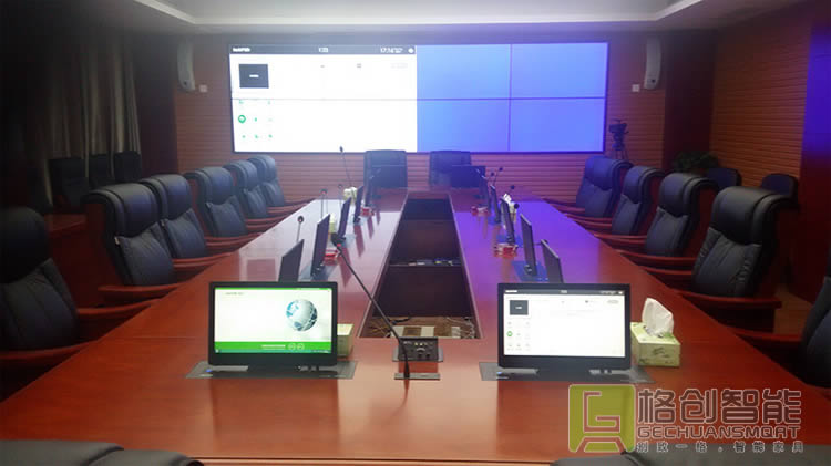 | 為了滿足高密度的會議需求,傳統會議模式的升級改造,是通州地稅局提升內部效率的首要任務。在深入調研和了解市場多種智能會議室方案的優劣勢后,結合自身實際需求,最終決定采用格創智能研發的自動升降的無紙化會議系統解決方案 |