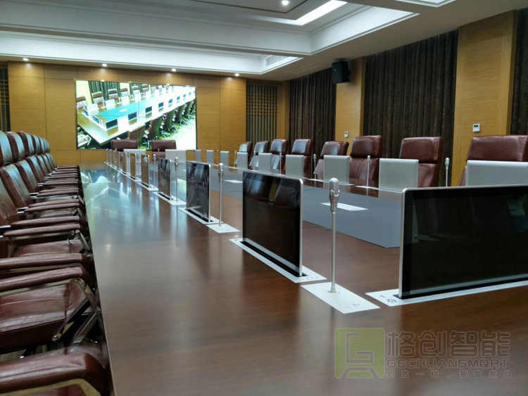 眾所周知,會(huì)議室是領(lǐng)導(dǎo)們開會(huì)傳達(dá)政策和指示精神的重要場(chǎng)所,所以在會(huì)議使用過程中絕不能出絲毫差錯(cuò)。格創(chuàng)智能的無(wú)紙化液晶升降一體機(jī)終端,在會(huì)議召開時(shí),將通過上升的方式展現(xiàn)于會(huì)議桌面以上,方便參會(huì)者觀看和瀏覽會(huì)議資料,并通過觸摸操作參與會(huì)議討論與交流;在會(huì)議結(jié)束之后一體機(jī)內(nèi)所含的升降器將通過降下的方式收納于放置在會(huì)議桌面以下的一體機(jī)機(jī)體內(nèi),防盜、防塵,保持會(huì)議室的美觀與整潔。