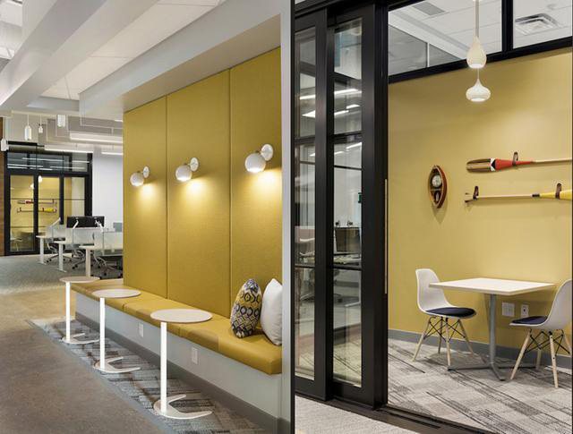 門(mén)窗品牌Marvin伊根總部設(shè)計(jì)及辦公家具應(yīng)用欣賞。成立于1912年的美國(guó) Marvin Windows and Doors(馬文門(mén)窗公司),是一家擁有百年歷史的家族企業(yè),也是世界最大的實(shí)木門(mén)窗定制產(chǎn)品制造商和世界頂級(jí)的門(mén)窗品牌之一。本案是其位于明尼蘇達(dá)州伊根的辦公室,由Shea設(shè)計(jì)團(tuán)隊(duì)打造。設(shè)計(jì)向其發(fā)源地和百年歷史致敬,通過(guò)配色、定制辦公家具、以及大量溫暖情懷的元素去打造一個(gè)有著文化底蘊(yùn)的辦公場(chǎng)所。