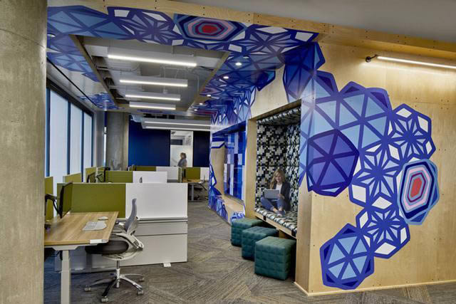 小城阿法樂特位于亞特蘭大附近,有著“慶典城市”的美譽,全年舉辦各種慶祝活動。位于這里的微軟新辦公室,將這種熱情歡快的文化基因注入到室內空間的設計中,呈現出一派盛情的室內氛圍迎接每一位員工和客戶的到來。