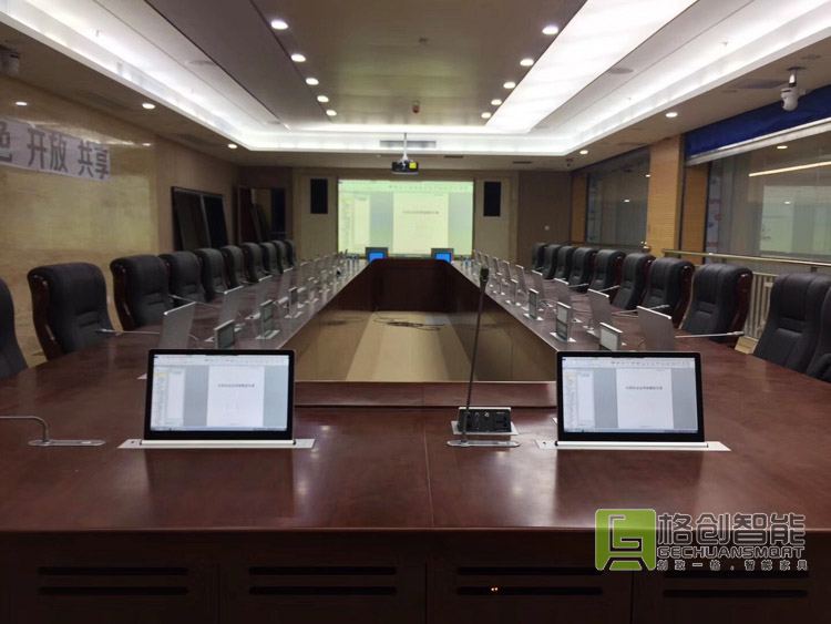 格創智能無紙化會議模式,通過智能化操作、升降式會議設備、解決了傳統開會繁瑣的步驟,簡化了開會流程,使會議更加簡潔方便,減少了資源的浪費。同時全程采用互聯網技術,減少紙張文件資料的印刷,保證機密文件得到了更好的保護,真正實現“智慧政務”。