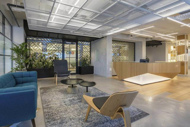 設計團隊從企業的光學領域中擷取設計概念,表達光和透視對空間和人的影響,從物理和感官兩方面來詮釋。入口接待區作為公司產品和創新屬性的展示區,嵌入木地板的混凝土地面,竹制木飾面和金屬構架。這里是訪客活動的地方,他們可以通過玻璃與木格子屏風墻向辦公室內部工作區窺視。