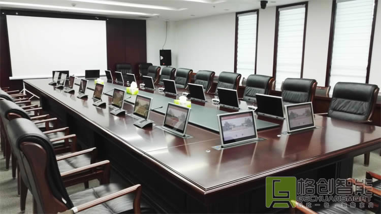 格創(chuàng)智能嚴(yán)格按照該油田集團的信息化建設(shè)要求,結(jié)合原會議室建筑結(jié)構(gòu)及相關(guān)設(shè)計標(biāo)準(zhǔn)進行設(shè)計效果圖,根據(jù)客戶參會人數(shù)進行會議桌定制,并選用的是定制款的液晶屏升降一體機,它取代傳統(tǒng)的辦公電腦,部署于會議桌上面,使用時升起,閑置時閉合,屏幕可以調(diào)整至最適合觀看的角度,帶來舒適愉快的使用體驗。整個智能會議室環(huán)境通過互聯(lián)網(wǎng)信息化技術(shù)與會議系統(tǒng)控制主機連接,組成一套完整的智能交互式無紙化會議系統(tǒng)。