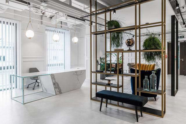 設(shè)計(jì)師Emilia Wojcicka說(shuō):“注重細(xì)節(jié)的設(shè)計(jì)賦予了這處空間獨(dú)特的質(zhì)感。走進(jìn)辦公室,迎面而來(lái)的是一個(gè)寬敞、明亮、充滿金色元素的接待空間。這里有漂亮的花白大理石接待臺(tái)、有舒適柔軟的家具、還有大量的綠色植物。”