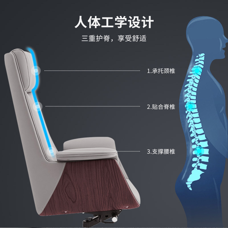 從使用者的視點(diǎn)動(dòng)身,皮質(zhì)大班椅比工作桌、文件柜等其他辦公家具對(duì)人的健康更重要。一天工作八小時(shí),有的人有七個(gè)小時(shí)坐在工作椅上。
